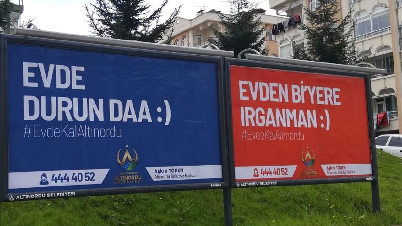 Altınordu Belediyesinin, vatandaşların evde kalmasına yönelik çağrılarını sürdürdüğü aktarılan açıklamada, bu sürece hem farklı bir boyut kazandırmak hem de vatandaşların ilgisini çekmek amacıyla yöresel ağızla billboardlar hazırladığı kaydedildi.