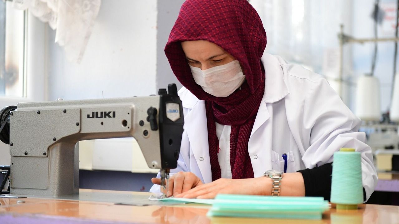 Ordu'da gönüllü öğretmenler ve kursiyerlerin katkısı ile vatandaşlara ücretsiz dağıtılacak 100 bin maskenin üretimine başlandı.