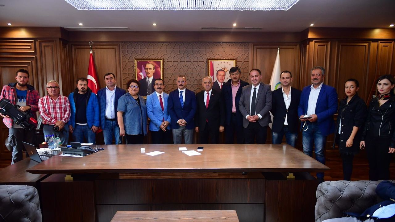19 Eylül Gazeteciler Cemiyeti Yönetimi ve Üyelerinin ziyaretinden duyduğu memnuniyeti ifade eden Büyükşehir Belediye Başkanı Engin Tekintaş, basının önemine değinerek, “Bizler basın mensuplarımızla birlikte çalışıyor ve bu şehri birlikte yönetiyoruz. Sizler doğru haberi doğru kaynaktan alıp en iyi şekilde halkımıza ulaştırmakla önemli bir görevi yerine getiriyorsunuz. Bizler bugüne kadar sizlerin sayesinde halkımıza ulaşarak konuları doğru şekilde anlatabildik ve bu sayede kamuoyundaki algının sistemli bir şekilde yönlendirilmesini sağladık. Milletimiz bundan sonraki süreçte bizden sadece hizmet, kardeşlik, kucaklaşma, gönül birliği ve gönül adamlığı bekliyor. Bunların hepsine hazır olduğumuzu belirterek biz de milletimizin duasını bekliyoruz. Bu vesileyle Dernek Başkanımız Erdoğan Erişen’e, Dernek Yönetimi ve Üyeleri ile basın camiasında görev yapan kardeşlerimize teşekkür ediyor ve başarılar diliyorum” dedi.
