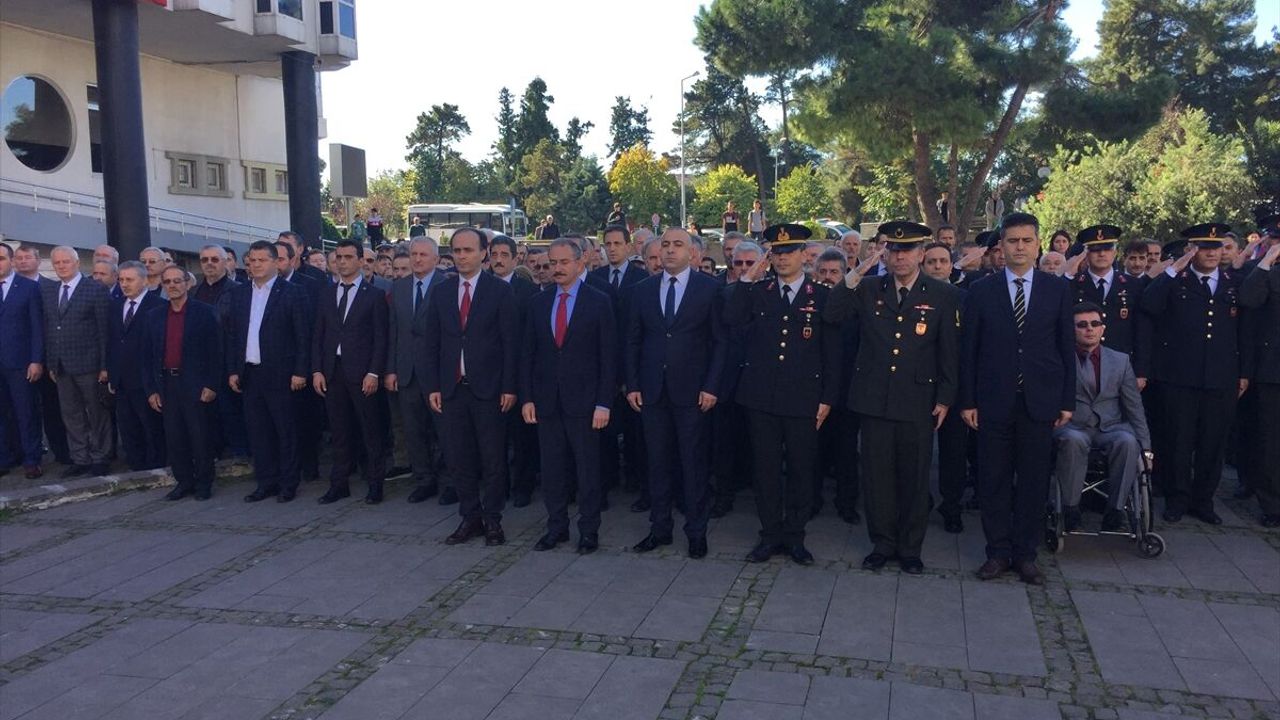 Çarşamba Belediye Meydanı'ndaki Atatürk Anıtı'na Kaymakamlık ve Belediye Başkanlığı çelenkleri sunuldu.
