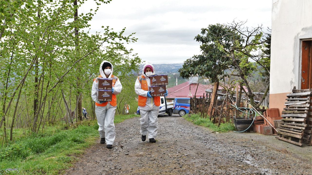 Ordu'da Artan Koronavirüs vakaları sebebiyle karantinaya alınan Altınyurt Mahallesi’ndeki vatandaşlara, Altınordu Belediyesi tarafından gıda ve hijyen desteği sağlandı.