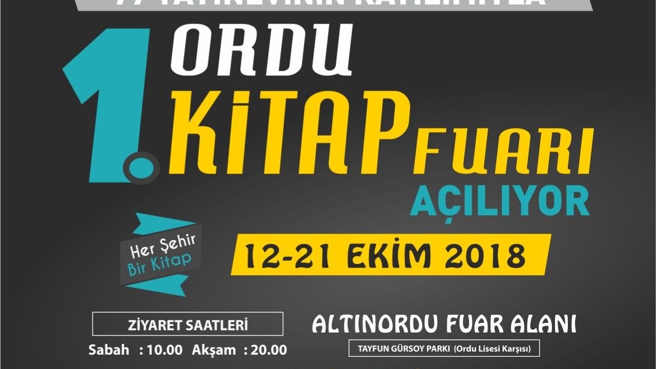 Bu yıl kapsamı genişletilerek Ordu Ulusal 1. Kitap Fuarı adıyla düzenlenecek olan kitap fuarı 12 Ekim Cuma günü kapılarını halka açıyor.