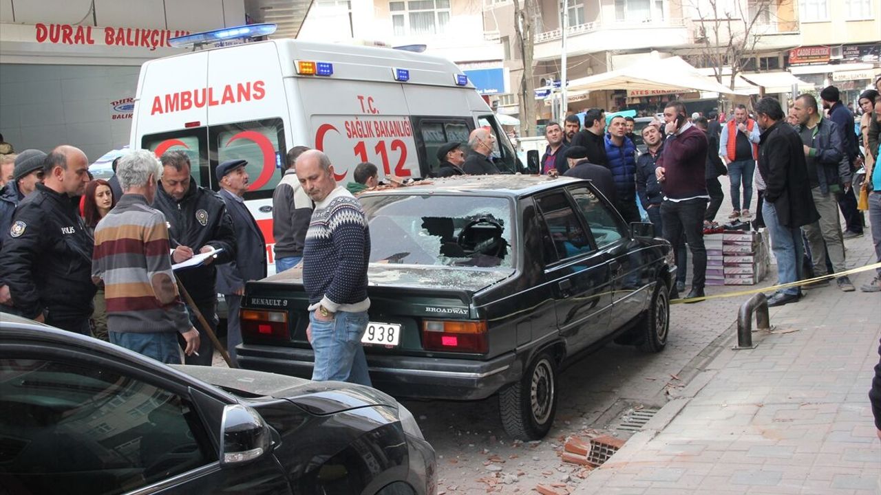 ORDU (AA) - Ünye ilçesinde bir binanın çatısından düşen tuğla parçaları, park halindeki araçta hasara yol açtı.