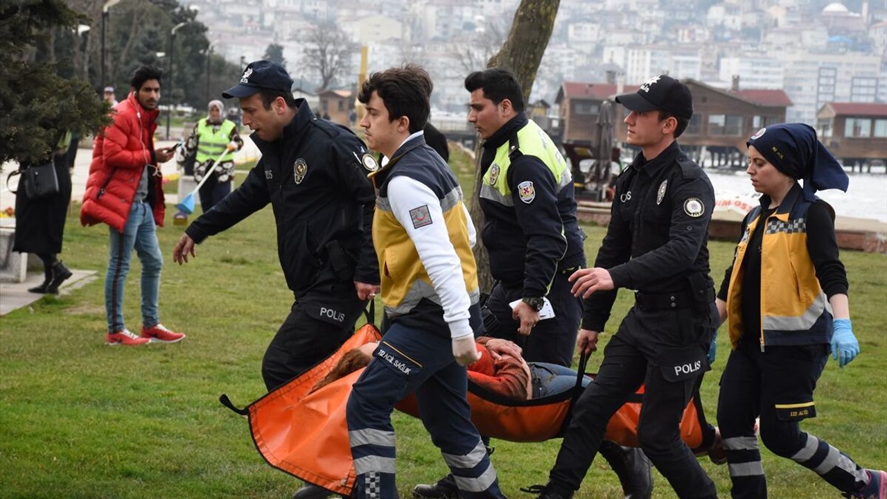 Boğulma tehlikesi geçiren kadını çevredeki vatandaşlar denizden çıkarttı.