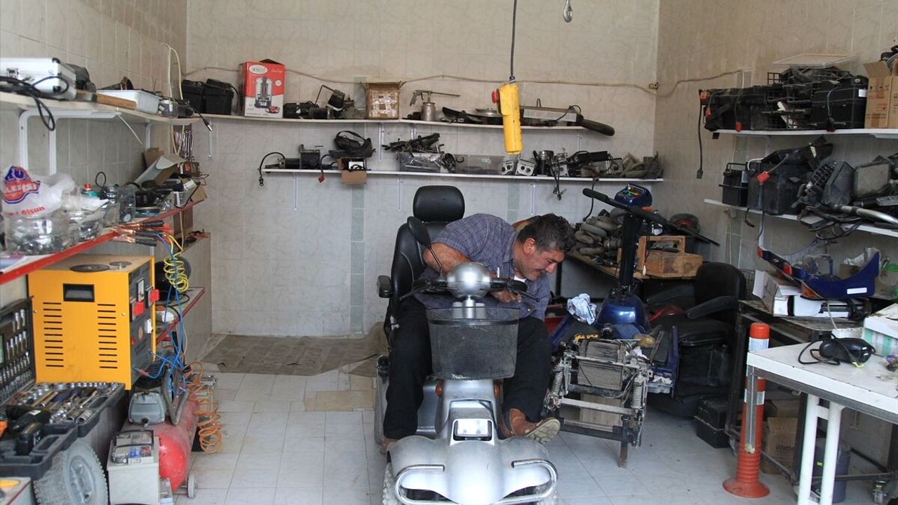ÇORUM (AA) - İLYAS GÜN - Çorum'un Alaca ilçesinde yaşayan ve 18 yaşında bedensel engelli olan 54 yaşındaki Durak Çinkaya, bozuk tekerlekli sandalyeleri tamir ederek yeniden engellilere kazandırıyor.
