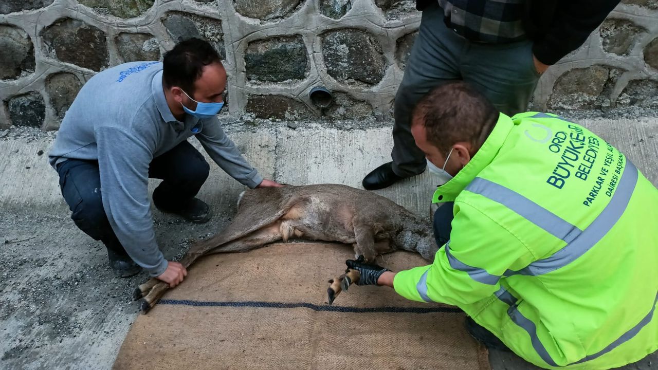 Yaralanan karacanın imdadına Ordu Büyükşehir Belediyesi ekipleri yetişti.