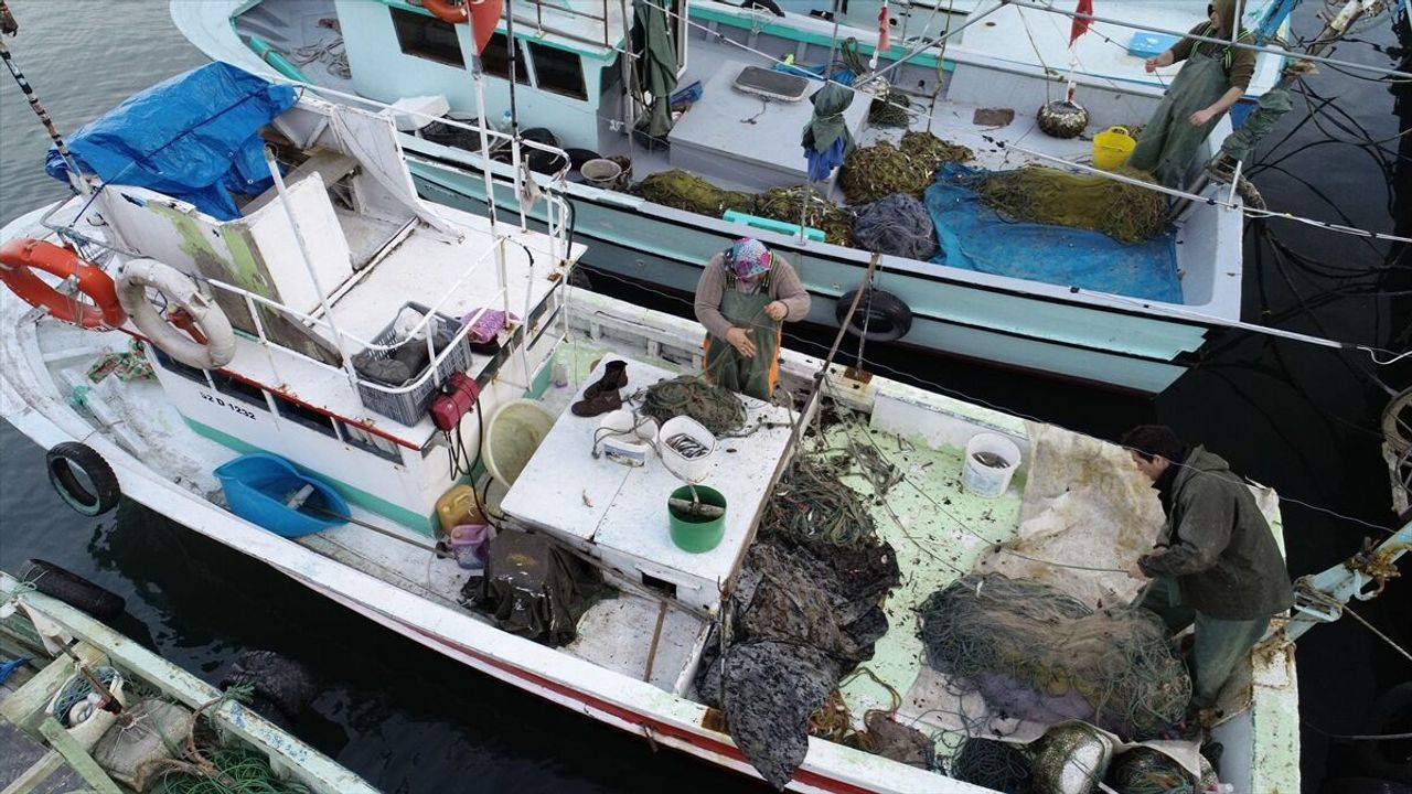 Medreseönü Balıkçı Barınağı'nda eş, çocuk ve kardeşleriyle yıllardır denizde nasibini arayan kadınlar, çalışkanlıklarıyla örnek oluyor.