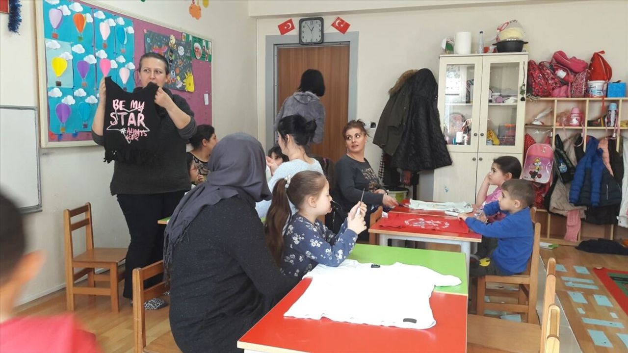 ORDU (AA) - Fatsa Şehit Zafer Özdeniz İlkokulu ana sınıfı öğrencileri ve velileri 'Sıfır Atık Projesi' kapsamında kullanmadıkları tişörtlerden çanta yaptı.