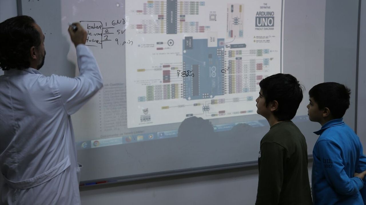 Yaklaşık bir ay önce açılan 'Kodlama ve Robotik' kursunda öğrenciler, robota nasıl işlev katılacağı, nasıl programlanacağı ve hangi amaçlar için kullanılacağını öğreniyor.