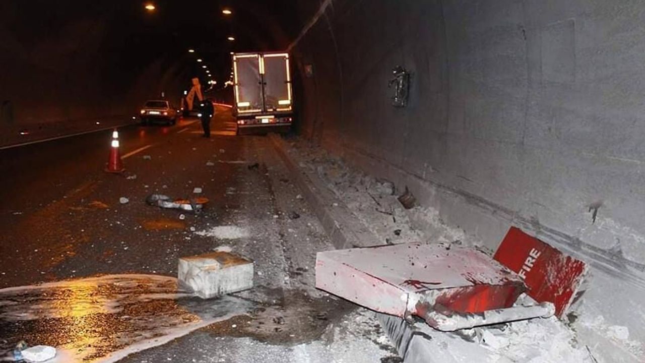 Edinilen bilgiye göre, Metin Uzun (45) yönetimindeki W0076W0 plakalı tır, Samsun-Ordu karayolu üzeri Ünye Yunus Emre Tüneli'nde sağ lastiğinin patlaması sonucu tünel içerisinde bir süre sürüklendi. Önce yangın panosuna, ardından telefon kulübesine çarparak durabilen tırın sürücüsü yaralandı.