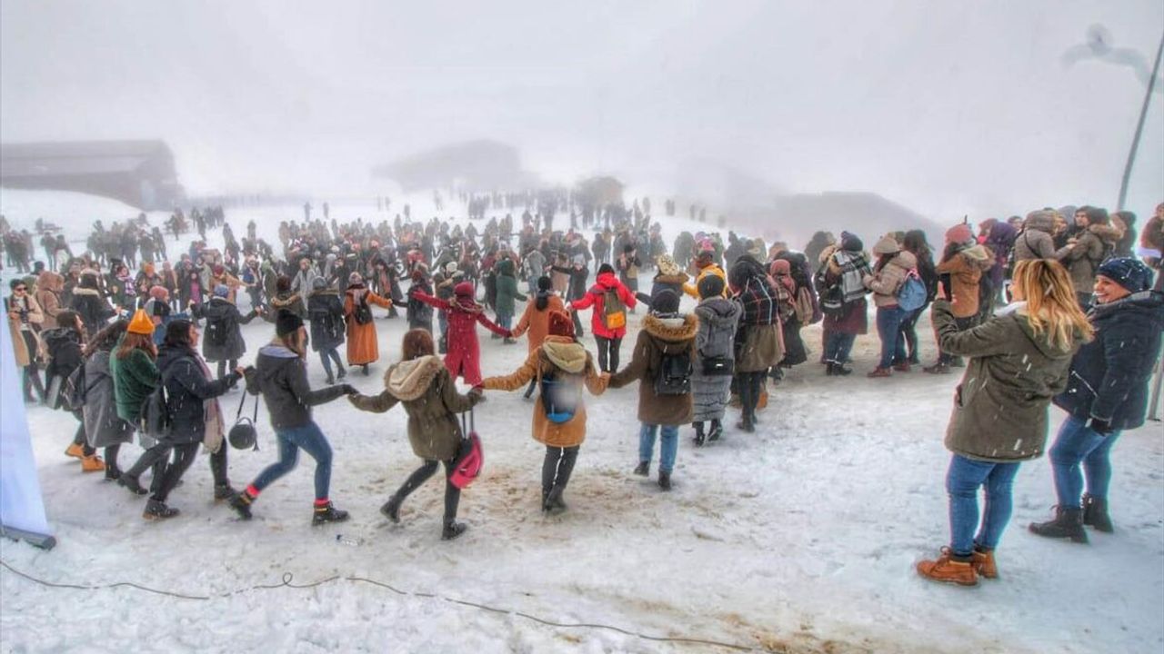 Tesislerde Türk bayrağı açılarak İstiklal Marşı okunmasıyla başlanan etkinlik çerçevesinde öğrenciler, karda kızak yapma fırsatı buldu.