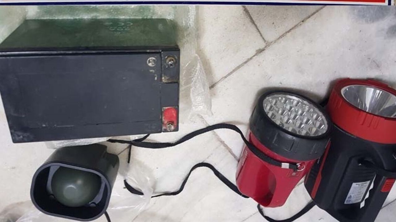 Ekipler, yüksek noktalara kurularak çıkardığı bıldırcın sesiyle çevredeki bıldırcınların o bölgede toplanmasını sağlayan elektronik hoparlör ile 2 ışıldağa el koydu.