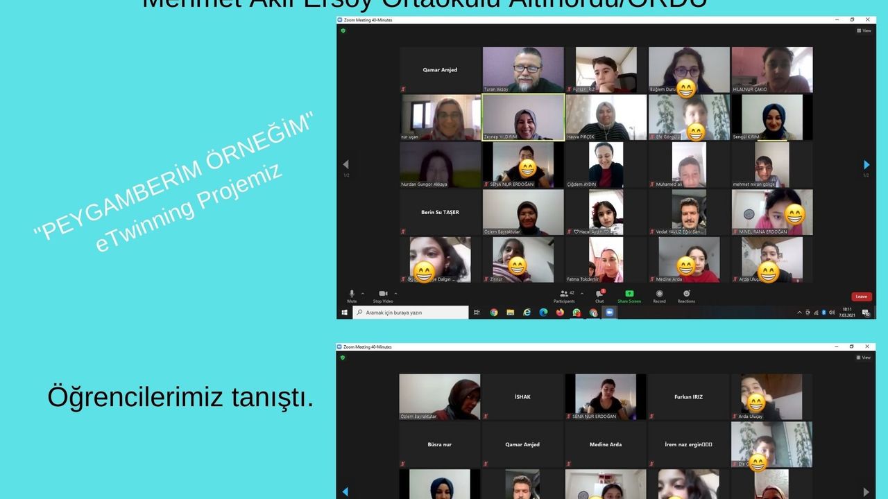 Ordu Altınordu Vilayetler Hizmet Birliği Adil Karlıbel İlkokulu Din Kültürü ve Ahlak Bilgisi Öğretmeni Elif Dinlek ile Altınordu Mehmet Akif Ersoy Ortaokulu Din Kültürü ve Ahlak Bilgisi Öğretmeni Nurdan Güngör Akkaya’nın yürüttüğü “Peygamberim Örneğim” eTwinning projesinde Konya, Diyarbakır, Ordu ve Urfa’dan 10 öğretmen ve 47 öğrenci görev alıyor. 15 Şubat 2021 tarihinde başlayan proje 15 Haziran 2021’de sona erecek.