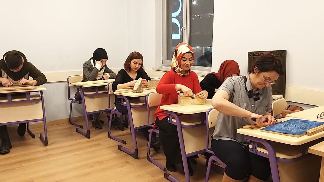 Zanaatkâr Ali Rıza Ateş öncülüğünde verilen 664 saatlik kursa başvuru yapan 22 kursiyer iş güvenliği önlemlerini alarak yüzey oyma, tabii şekil oyma, kaplama ve kakma gibi alanlarda eğitim alıyor.