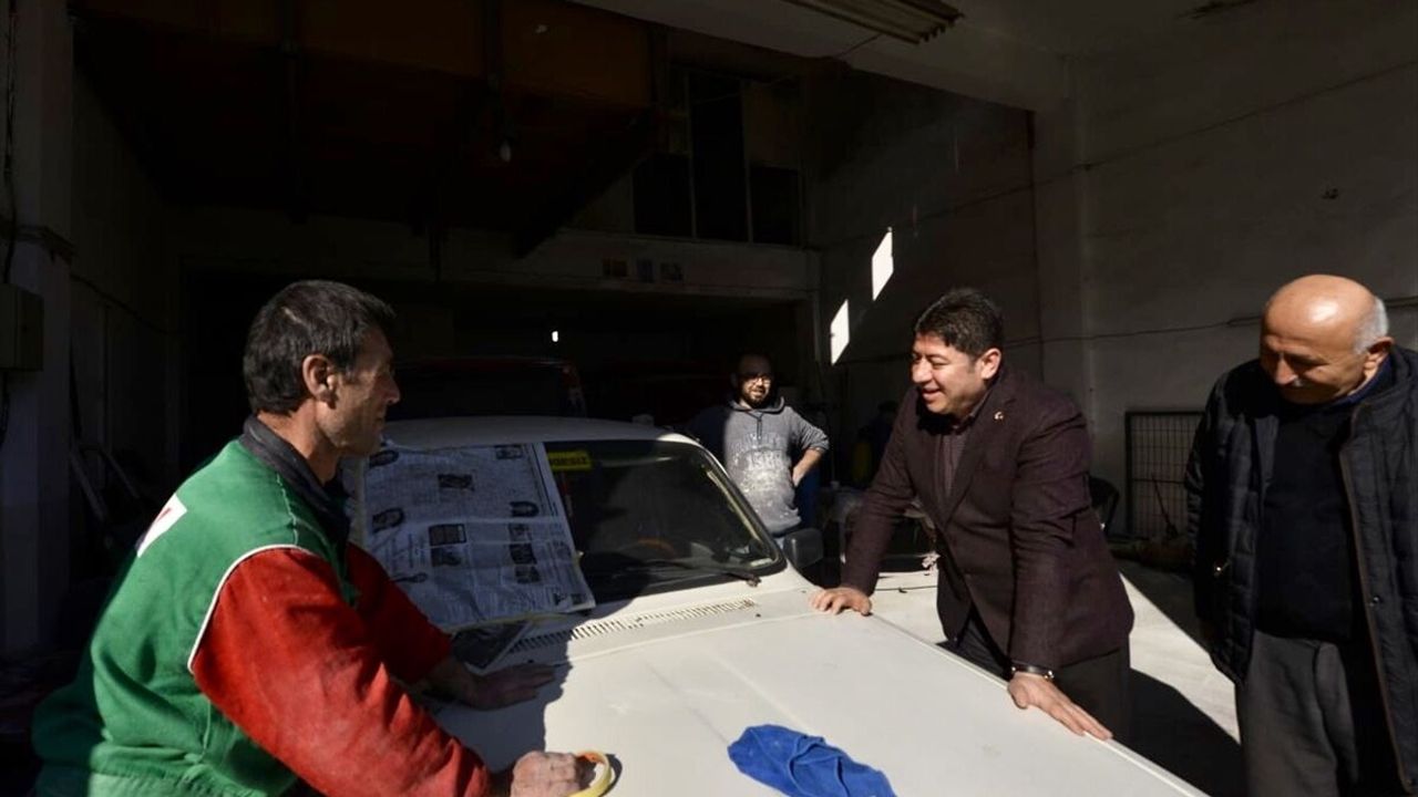 Tören, seçim çalışmaları kapsamında Karapınar Mahallesi'ndeki Yeni Sanayi esnafını gezdi.